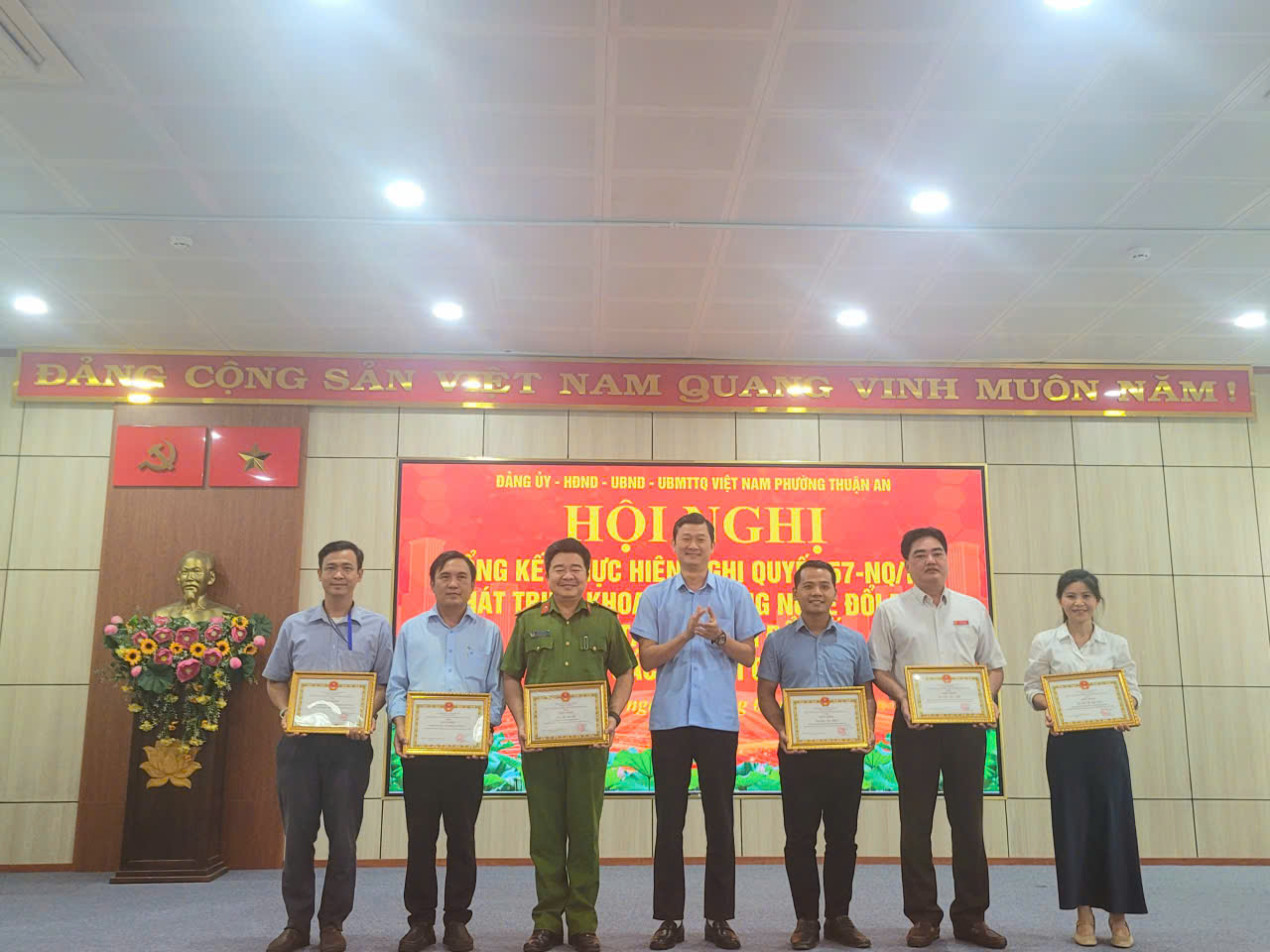 Dịp này, UBND phường Thuận An đã khen thưởng cho 8 tập thể và 21 cá nhân có thành tích xuất sắc trong công tác cải cách hành chính, phát triển khoa học – công nghệ và chuyển đổi số năm 2025./.