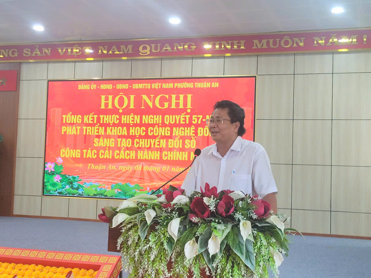 Chiều ngày 8-1, Đảng ủy – UBND phường Thuận An đã tổ chức Hội nghị tổng kết công tác thực hiện Nghị quyết số 57-NQ/TW của Bộ Chính trị về đột phá phát triển khoa học, công nghệ, đổi mới sáng tạo, chuyển đổi số quốc gia gắn với công tác cải cách hành chính năm 2025; đồng thời đề ra phương hướng, nhiệm vụ trọng tâm năm 2026.