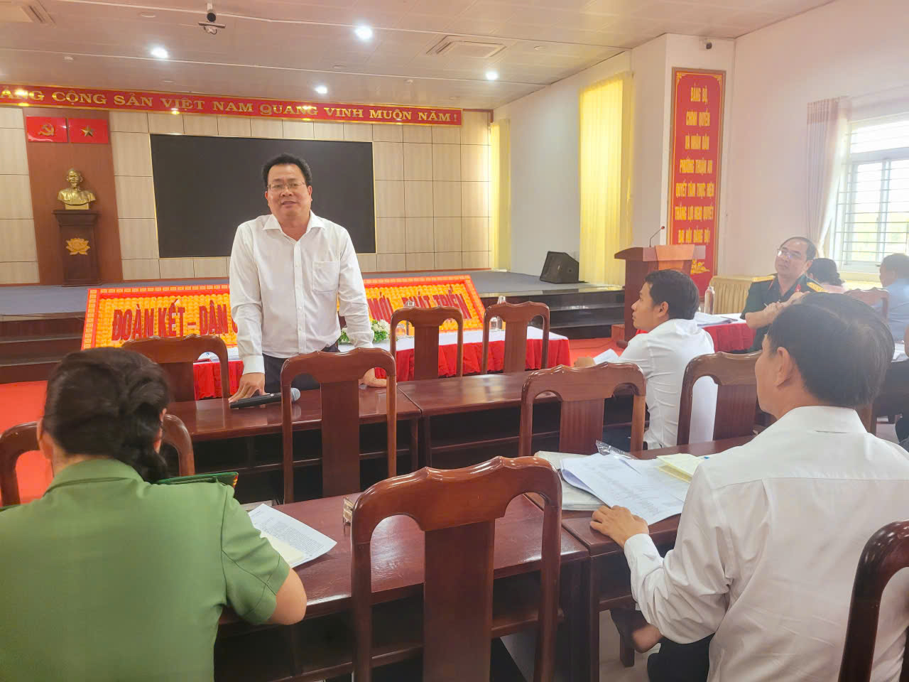 Cuộc họp cũng thống nhất kế hoạch tổ chức lễ giao, nhận quân, bao gồm thời gian, địa điểm, công tác trang trí, khánh tiết, phương án đưa đón thanh niên nhập ngũ, bảo đảm lễ giao quân diễn ra trang trọng, an toàn, đúng quy định.