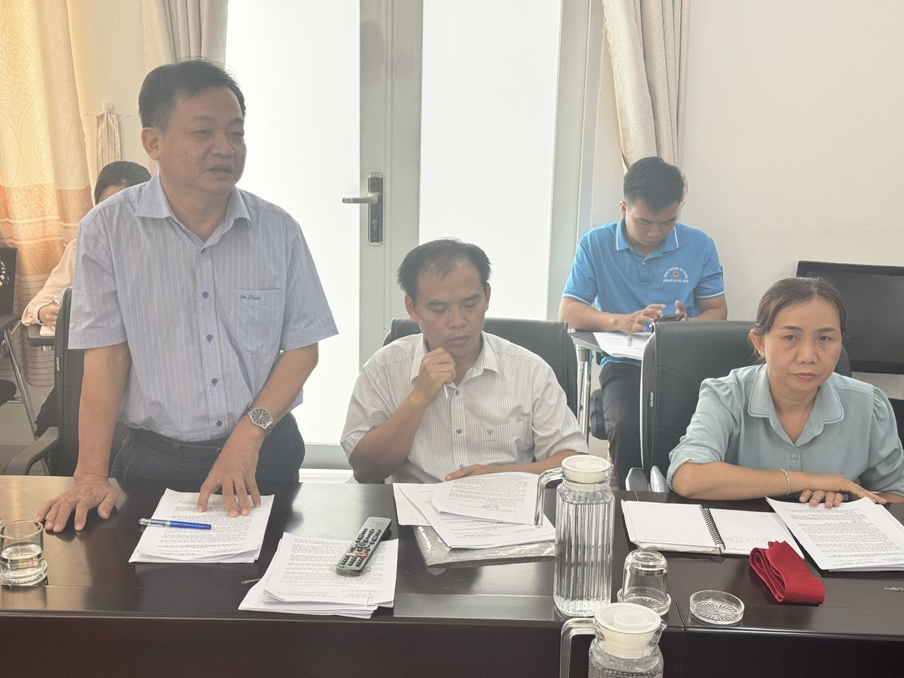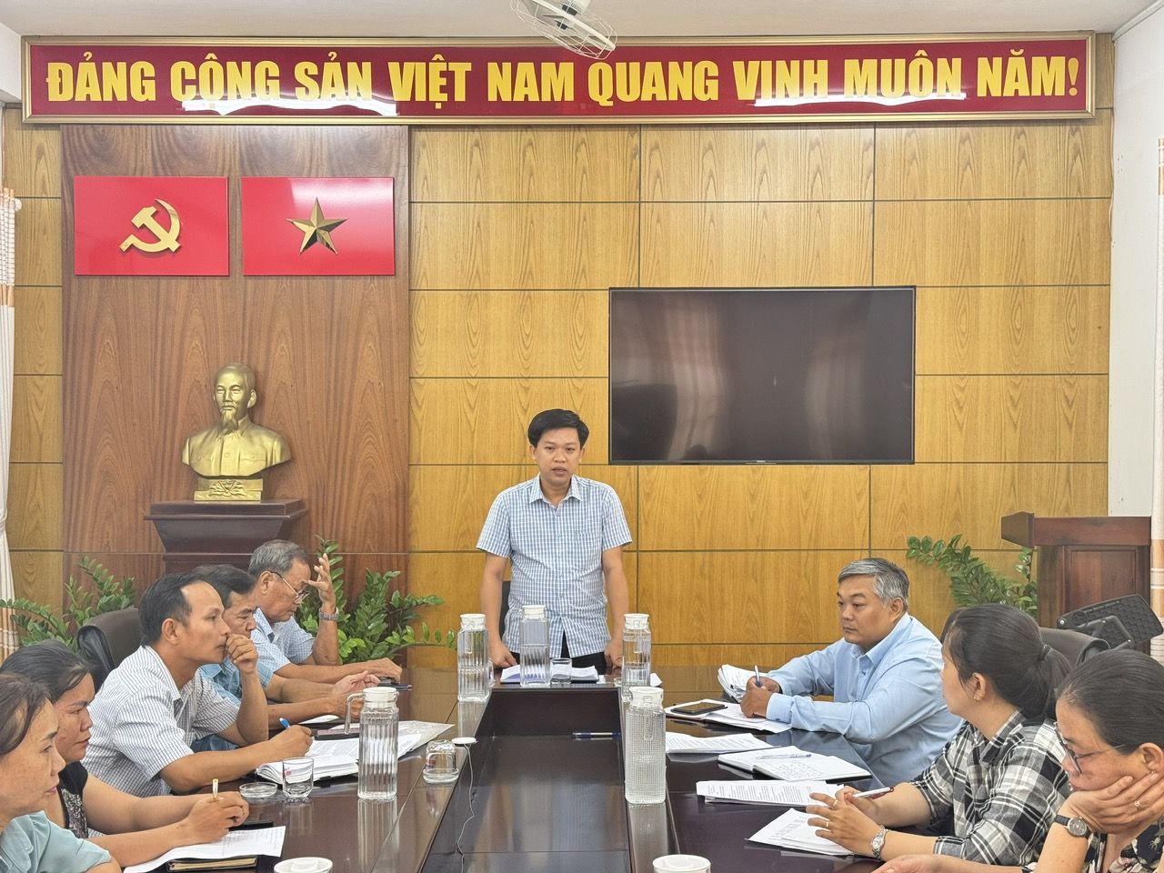 Ông Duy Tiến Linh Trưởng trạm Y tế An Thạnh có ý kiến đóng góp kế hoạch.