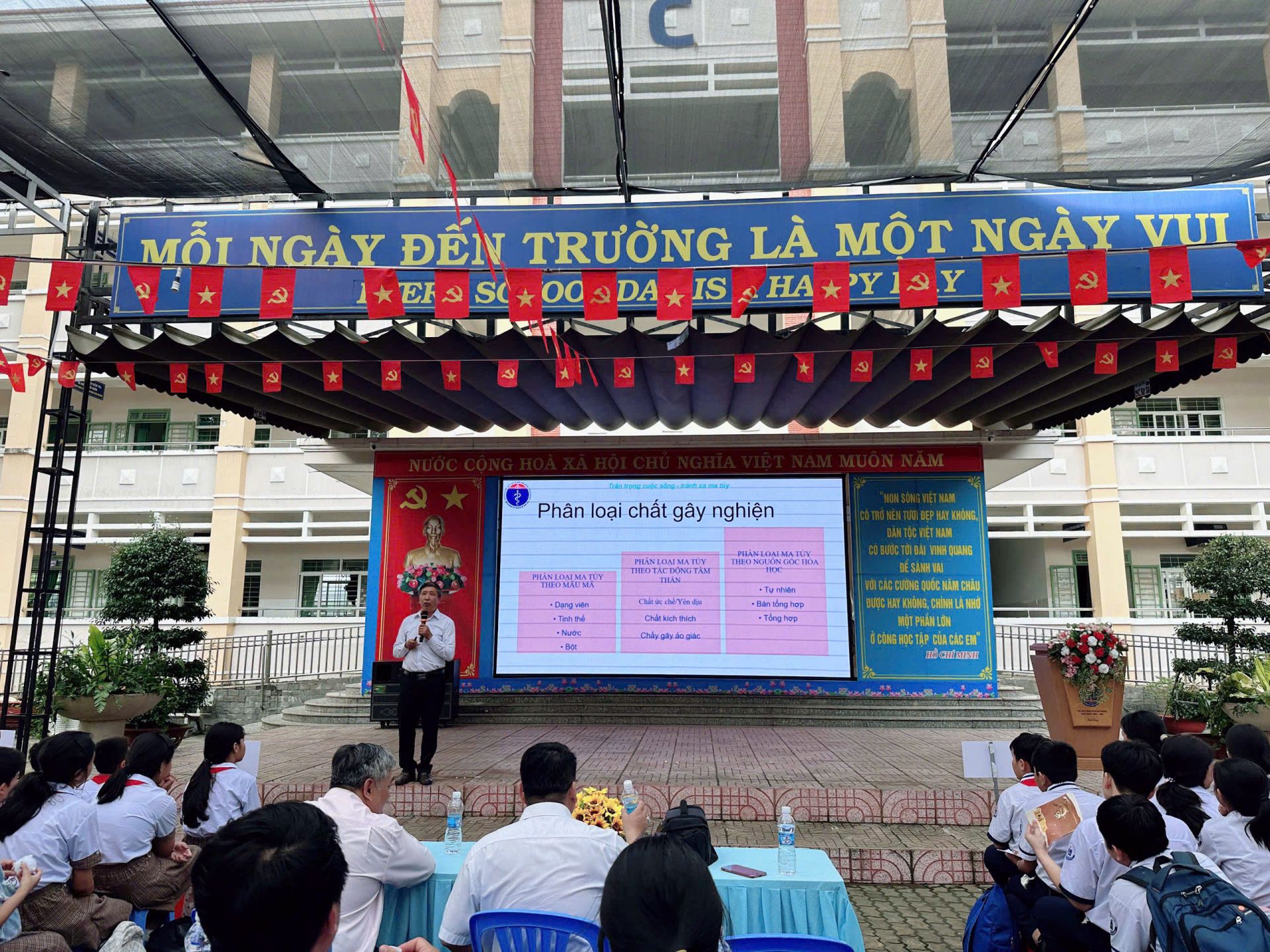 Đến dự buổi tuyên truyền có Ông Trần Quang Diệu – Báo cáo viên Chi Chi cục Phòng, chống tệ nạn xã hội; Ông Trần Duy Khoa, Phó Chủ tịch Ủy ban Mặt trận Tổ quốc Việt Nam phường/Chủ tịch Hội Cựu chiến binh phường; Bà Nguyễn Ngọc Song Phụng Phó Bí thư Đoàn Thanh niên Cộng sản Hồ Chí Minh phường; Trung uý Nguyễn Lâm Trường đại diện Công an phường. Ông Phan Ánh Duyên Hiệu Trưởng trường Trung học cơ sở Trịnh Hoài Đức và hơn 400 học sinh Trường Trung học cơ sở Trịnh Hoài Đức.